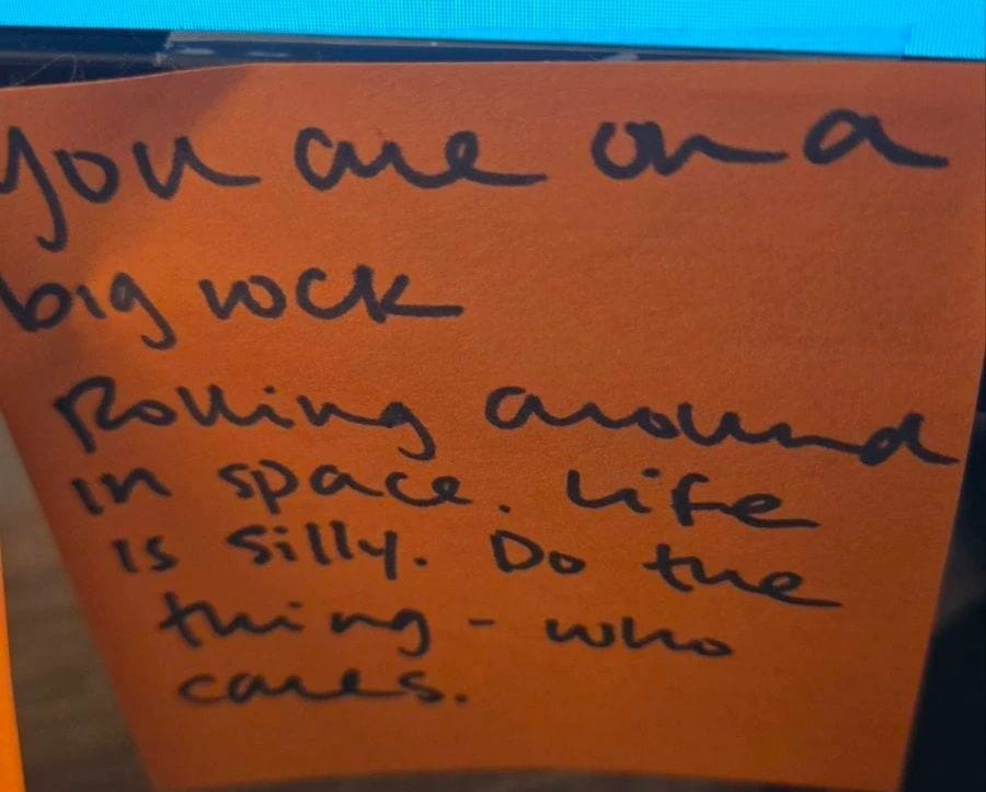 I keep a Post-it note on my desk to remind myself that life is weird and it’s okay to lean into the messiness … by having fun and being silly!